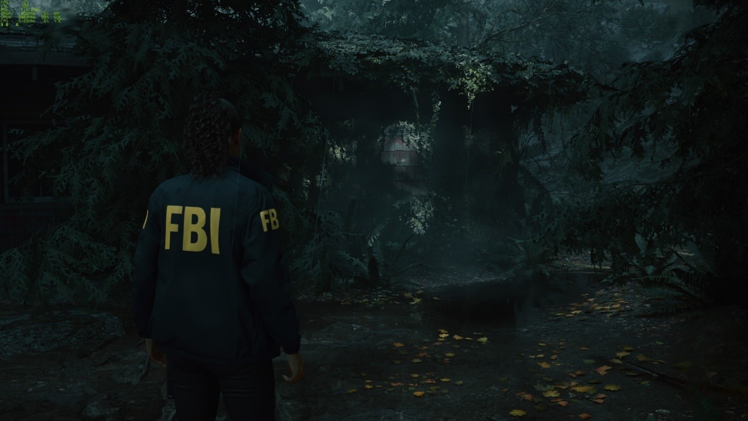 《心灵杀手2》整体画面较为昏暗,但光影氛围刻画非常到位。在开启光追后,阴影的表现更清晰,更符合真实的物理表现,同时水体与《霍格沃兹之遗》相同,均能够表现出水潭的深浅,相比原生画质,游戏的代入感更强。