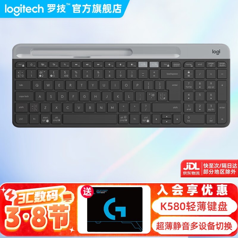 罗技K580无线蓝牙键盘京东特惠189元享多设备切换长续航