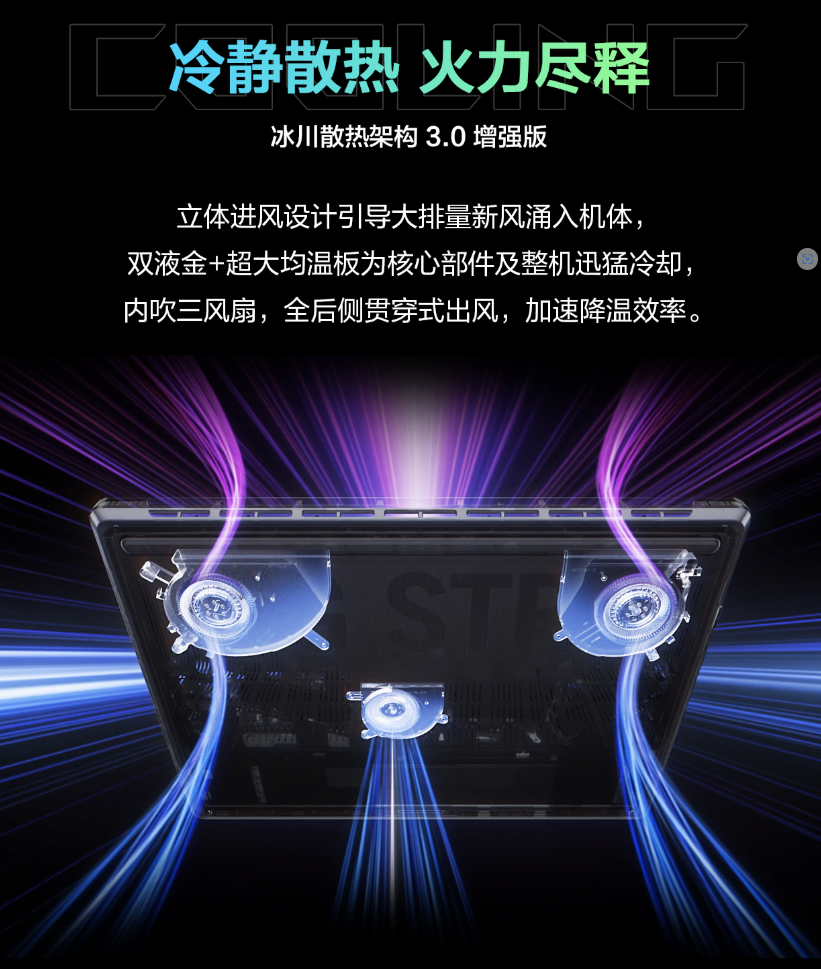此外,为了压制两颗高性能核心的热量,枪神9 Plus的散热系统升级为了冰川散热架构3.0增强版,CPU+GPU双2代的液金导热,使得散热效率提升约17倍,降温多达约15℃,令这款笔记本具备了250W顶级性能的输出,保证了玩家畅玩游戏也不会出现卡顿、掉帧的情况。