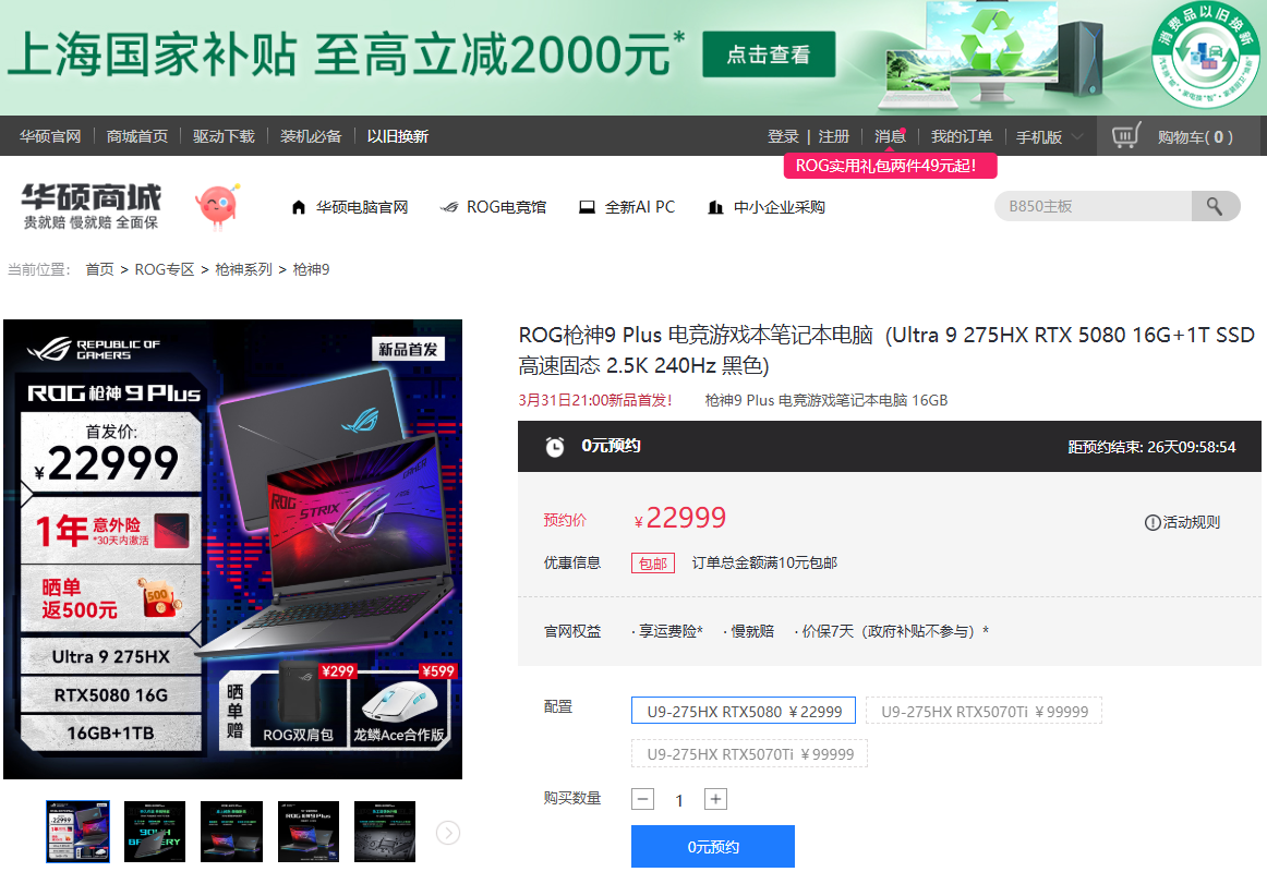 不得不说,ROG枪神9Plus是一款集高颜值外观,高性能释放、强游戏体验的旗舰型游戏笔记本,有需求的用户可要关注了。如今已经正式开启预约,3月31日开售,如果你是顶级游戏玩家,约起来吧!