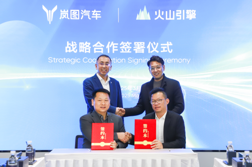 3月3日,岚图汽车科技有限公司与北京火山引擎科技有限公司在武汉签署战略合作协议。今后双方将结合各自产业资源、技术研发优势,探索在智能驾驶、AI座舱、企业数字化创新等核心场景的深度合作,助力中国汽车行业高质量发展。岚图汽车CEO卢放、CTO汪俊君、COO蒋焘、火山引擎汽车行业总经理杨立伟出席签约仪式。