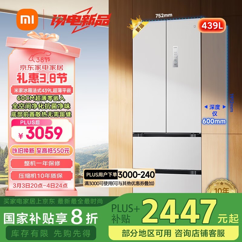 米家MIJIA BCD - 439WFMBI冰箱优惠价2439元