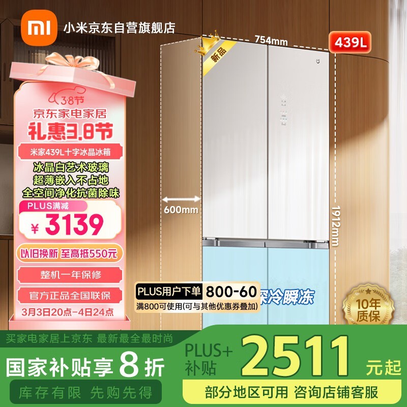 米家MIJIA 439L十字门风冷冰箱超值优惠