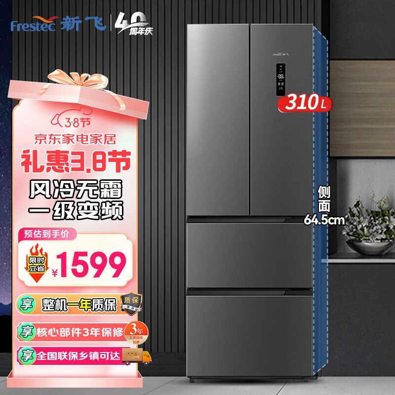新飞310升风冷无霜多门冰箱变频静音仅1599元包邮