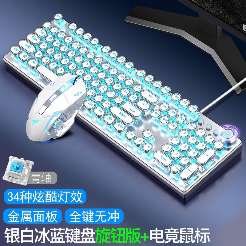 硕臣朋克机械键盘金属白冰蓝光-青轴旋钮版电竞套装