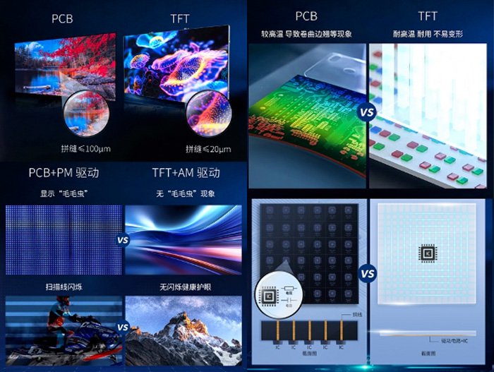 相比传统PCB基方案,TFT基Micro-LED优势突出: