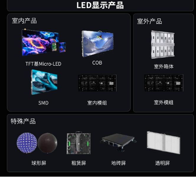 辰显光电的产品布局覆盖室内外应用场景:室内以TFT基Micro-LED、COB Mini-LED和SMD模组为核心,主打高对比度、高刷新率和灵活拼接;室外聚焦高亮度、高防护等级的SMD模组及全铝箱体产品,适应复杂环境。此外,还提供球形屏、租赁屏、地砖屏及透明屏等特殊产品,满足创意展示和差异化需求。