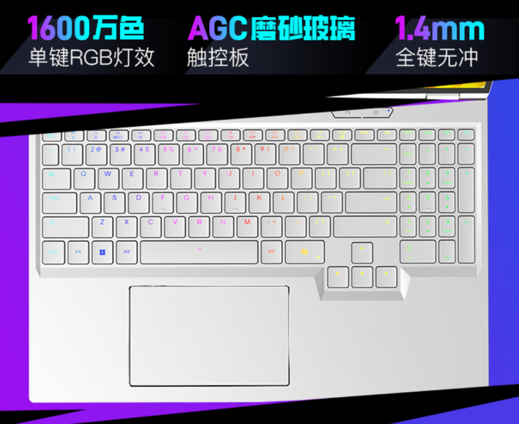 在键盘方面,机械革命耀世16 Ultra可以实现全键无冲的操控体验,通过新一代剪刀脚结构,让每一次按压都更加稳定,游戏时带来更精准的操控。配合1600万色RGB背光灯,带来满满的电竞氛围。