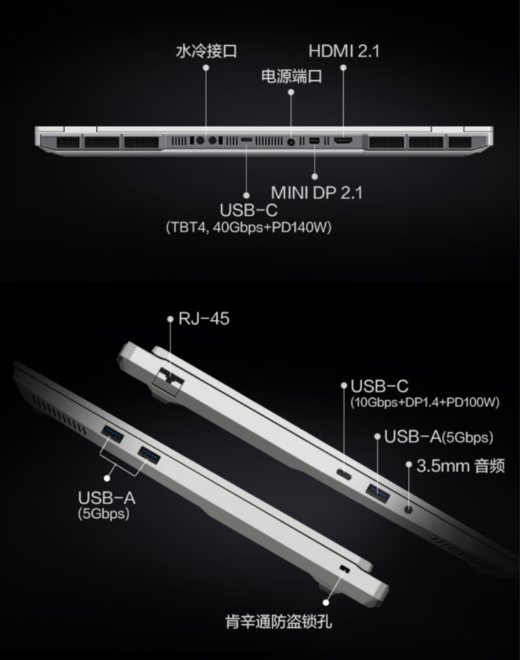 机械革命耀世16 Ultra也为用户带来了大满贯接口,包括3个USB-C、2个USB-A、RJ-45网口、3.5mm音频口、MINI DP2.1、HDMI 2.1,无论是外接显示器还是外接键鼠,都非常的方便,满足用户的扩展需求。