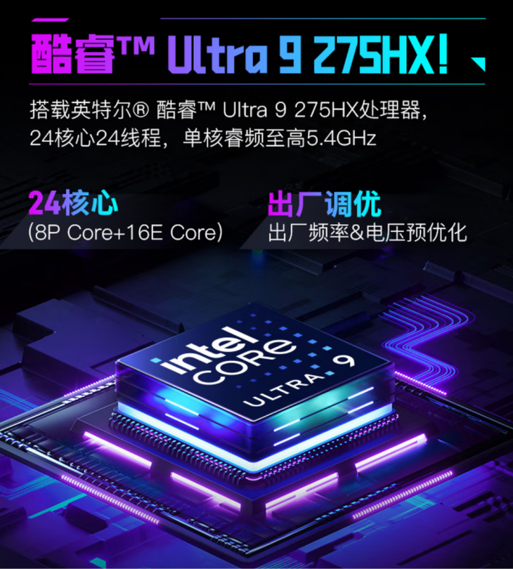 在搭载RTX5090的同时,机械革命耀世16 Ultra也首批搭载了英特尔全新旗舰Ultra9 275HX处理器,该处理器拥有24核心24线程,单核睿频至高可达5.4GHz,而且经过机械革命的频率和电压预优化,在稳定性上有着出色表现,无论是应用多开还是畅玩3A游戏大作,都更加的稳定。