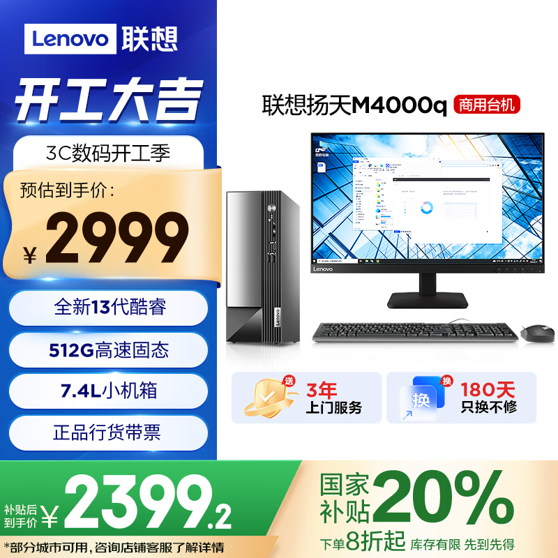 联想扬天M4000q台式电脑主机13代i3-13100京东8折优惠