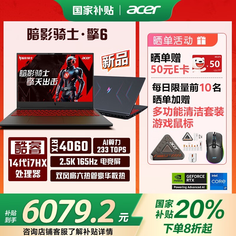 宏碁暗影骑士·擎6游戏本16英寸十四代i7-14650HX促销