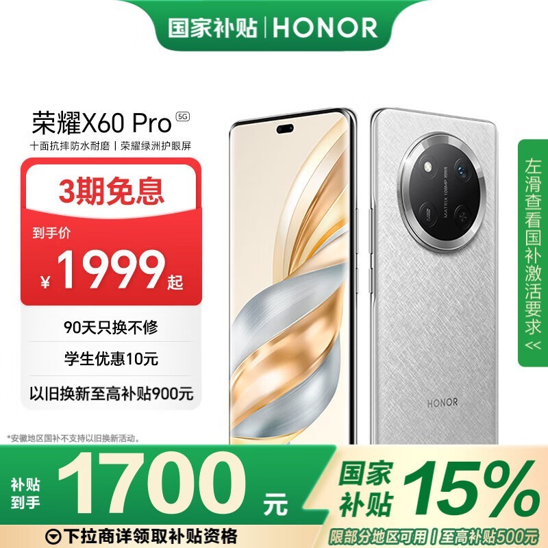 荣耀X60 Pro 5G手机京东特惠1639元享不停