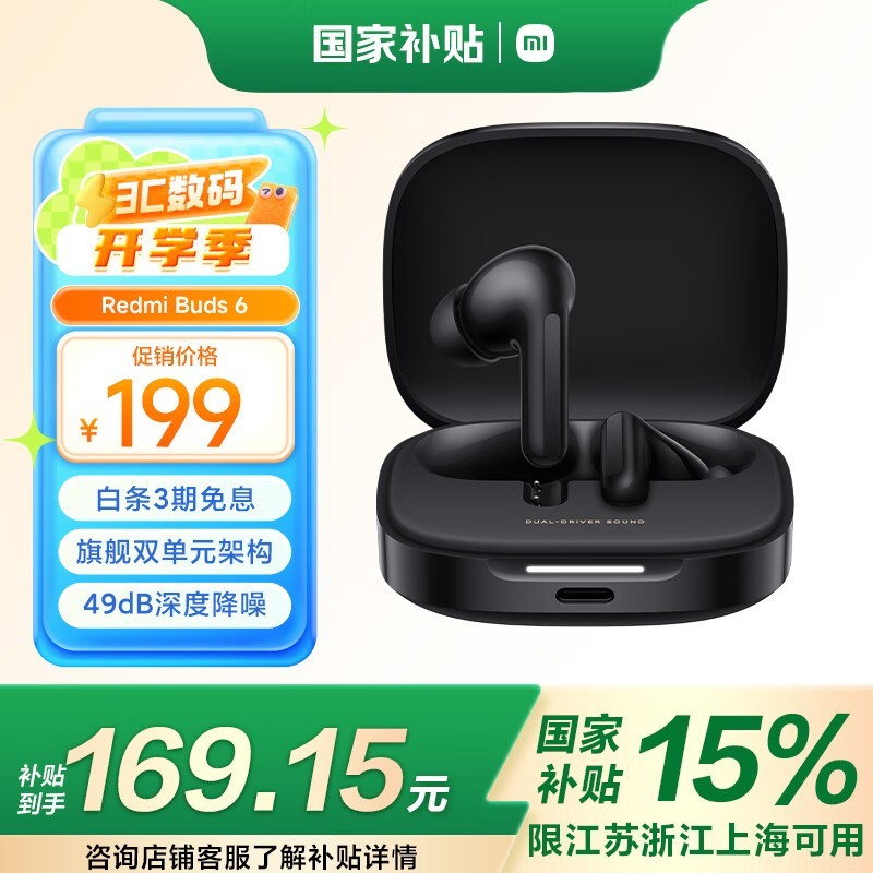 红米Buds 6蓝牙耳机京东促销,到手169元