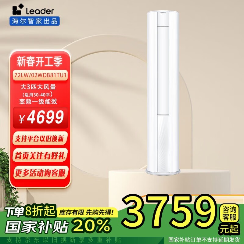 Leader统帅3匹空调柜机新一级能效大空间适用