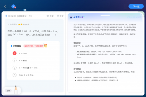 此次,得益于讯飞星火X1升级后的数学能力提升和推理可视化,当孩子答题错误时,AI能够自动批改并深入剖析孩子的错因,进行精准辅导。以“两点间距离”这道经典题为例,AI首先会对题目和孩子的作答情况进行全面分析,发现孩子是“没有考虑不同位置情况”导致出错。接着,针对性地引导孩子揪出深层错因、发现问题本质。最后,通过举一反三相似题训练,帮助孩子牢固掌握相关知识点。