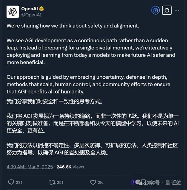 恰在此时,OpenAI发了一篇长文阐述了自己对AGI的看法,总结下来就是: