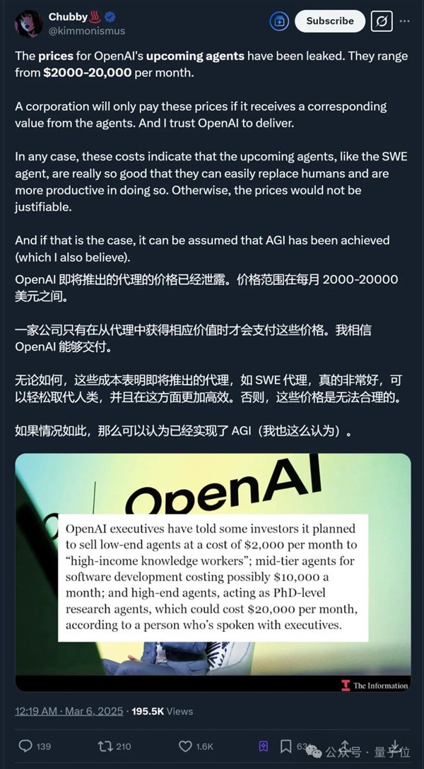 OpenAI即将推出的Agent,每月最低收费都要一万多?