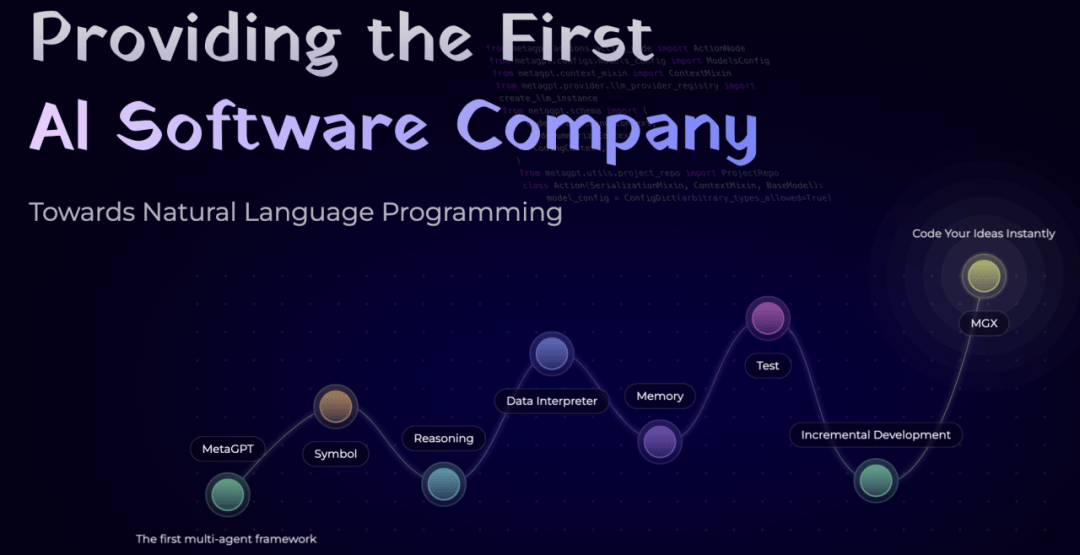 DeepWisdom成立于2019年,专注于AI Infra的开发及商业落地,希望通过搭建AgentStack(智能体底层架构),完成各领域Agent的大规模生产。作为全球首个完全模拟人类软件工作流程的多Al Agent开发平台,MGX实现了"零代码构建全栈应用"的创新突破。