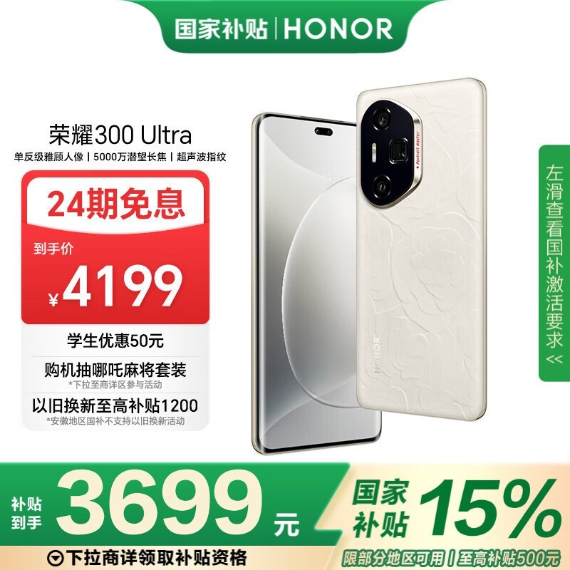 荣耀HONOR 300 Ultra 12GB+512GB山茶白超值价3478