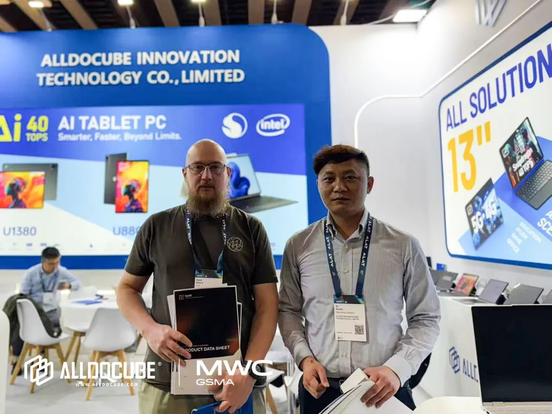 展会期间,ALLDOCUBE展台人气火爆,吸引了大量行业客户、媒体及科技爱好者驻足体验。观众对8.8英寸小巧便携并拥有强劲游戏性能,12.95英寸长续航兼顾影音娱乐+轻办公一体的产品,都表示出非常浓厚的兴趣,纷纷与技术人员深入探讨产品细节。多位欧洲渠道商现场表达合作意向,认为ALLDOCUBE“以技术创新填补了中高端平板市场的需求空白”。