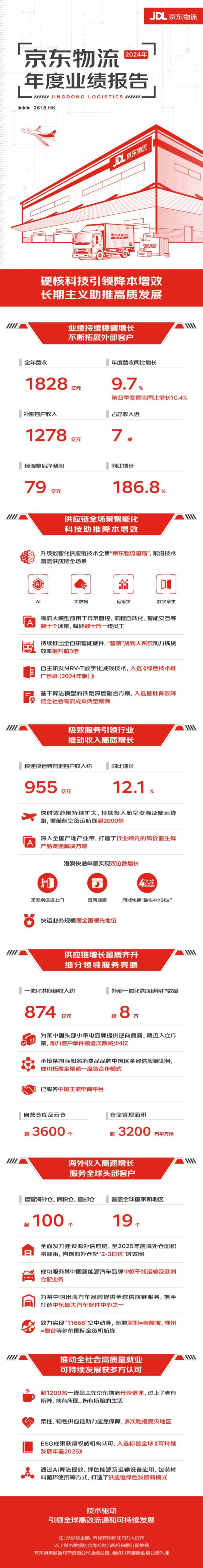 此外,近年来,京东物流持续协同德邦、跨越,细化快运解决方案,推动业务持续增长,目前包含德邦、跨越在内的快运业务,京东物流业务规模居全国领先。2024年,京东物流进一步在全国核心产地产业带开拓市场,例如,在某知名家具专业市场,通过场地投入、线路拉直以及系统升级等方式,实现了运营能力改善,产品竞争力和服务能力显著提升,为当地300多个商家提供了高效、安全的运输服务。