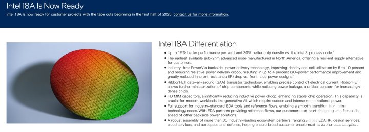 目前,英特尔官网已经更新了18A的页面,显示已经为客户做好了准备。早前有消息称英特尔正在与NVIDIA和博通等公司进行18A工艺的制造测试,这些测试不仅显示了这些公司对英特尔技术实力的信任,也为英特尔的代工业务注入了新的动力。不过这些测试尚未公开,也并没有得到相关公司的回应与确认。
