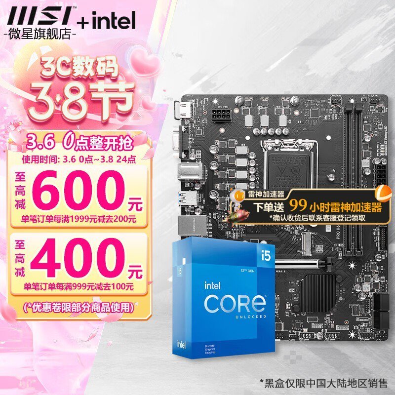 intel i5-12490F搭配MSI主板强劲性能仅999元