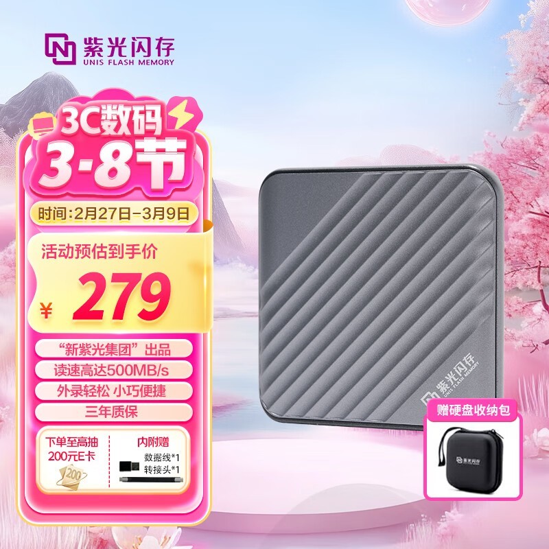 紫光闪存N2 512GB移动固态京东PLUS价262元