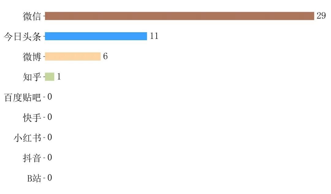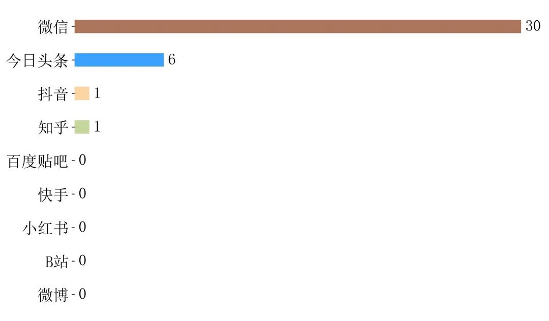 截止3月6日,该事件全网传播篇次为174条,事件主要传播渠道为微信平台,传播篇次30条,占比17.24%。