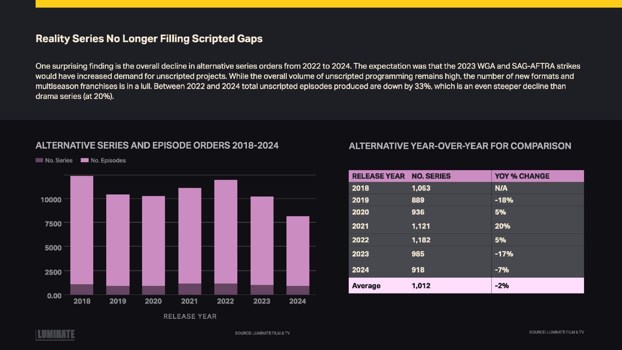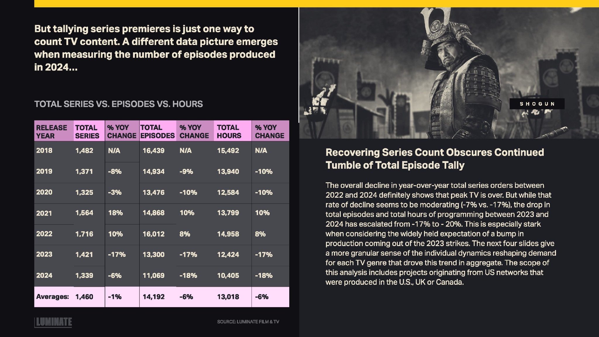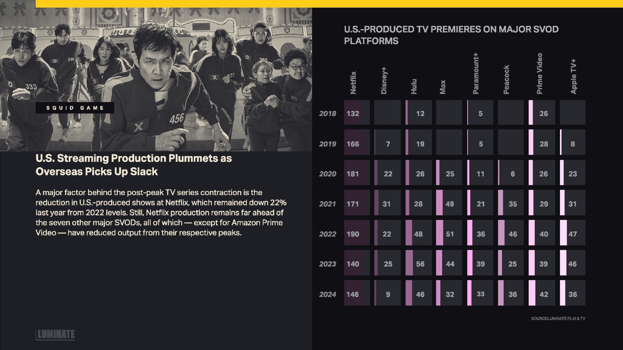 Luminate发布了“2024年年底电影和电视报告”,提供了美国制作的电视和电影内容数量。