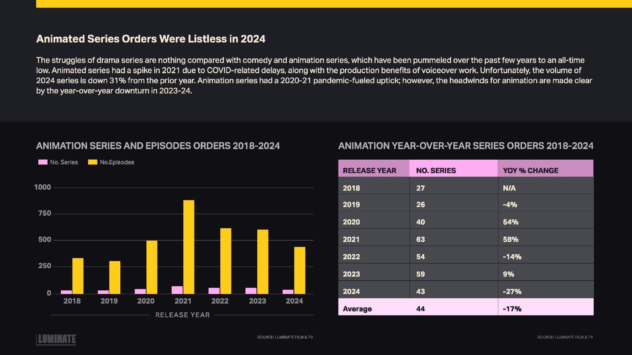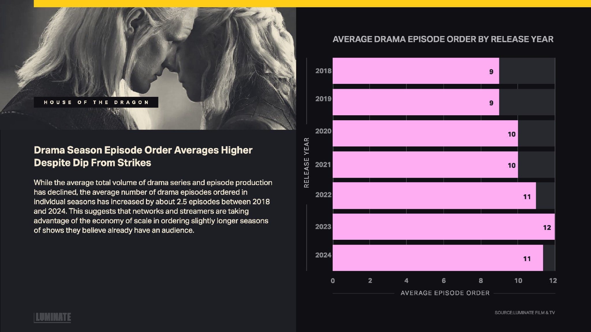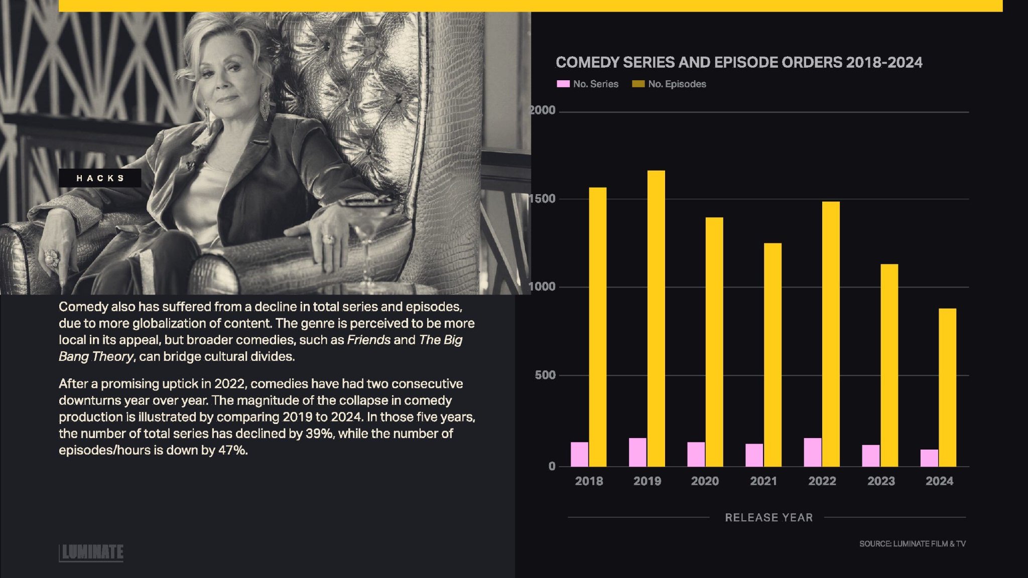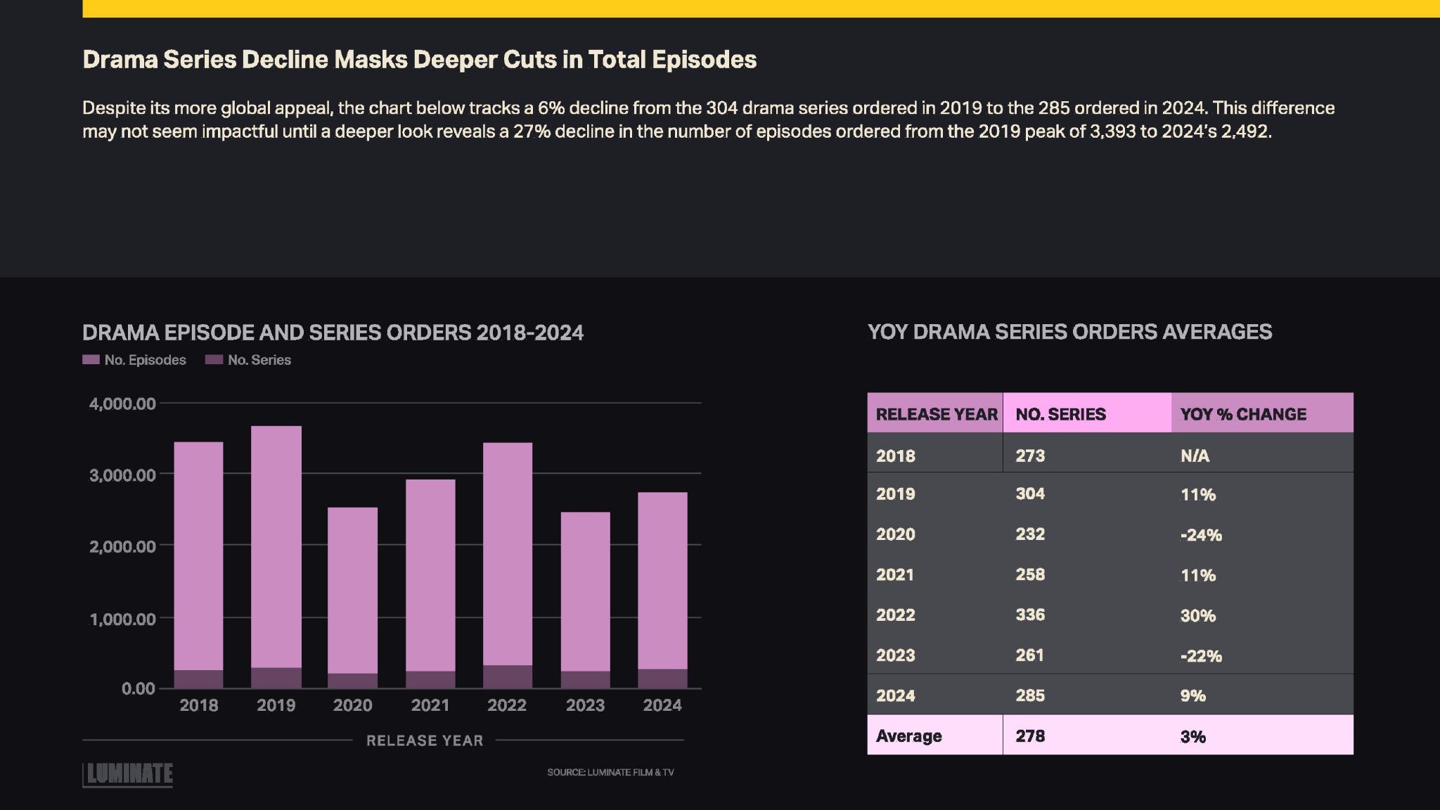 Luminate发布了“2024年年底电影和电视报告”,提供了美国制作的电视和电影内容数量。