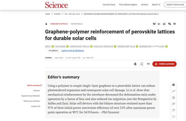 快科技3月7日消息,据央视新闻报道,华东理工大学科研团队成功找到延长钙钛矿太阳能电池寿命的关键方法,今日,相关成果发表在国际顶级期刊《科学》(Science)。