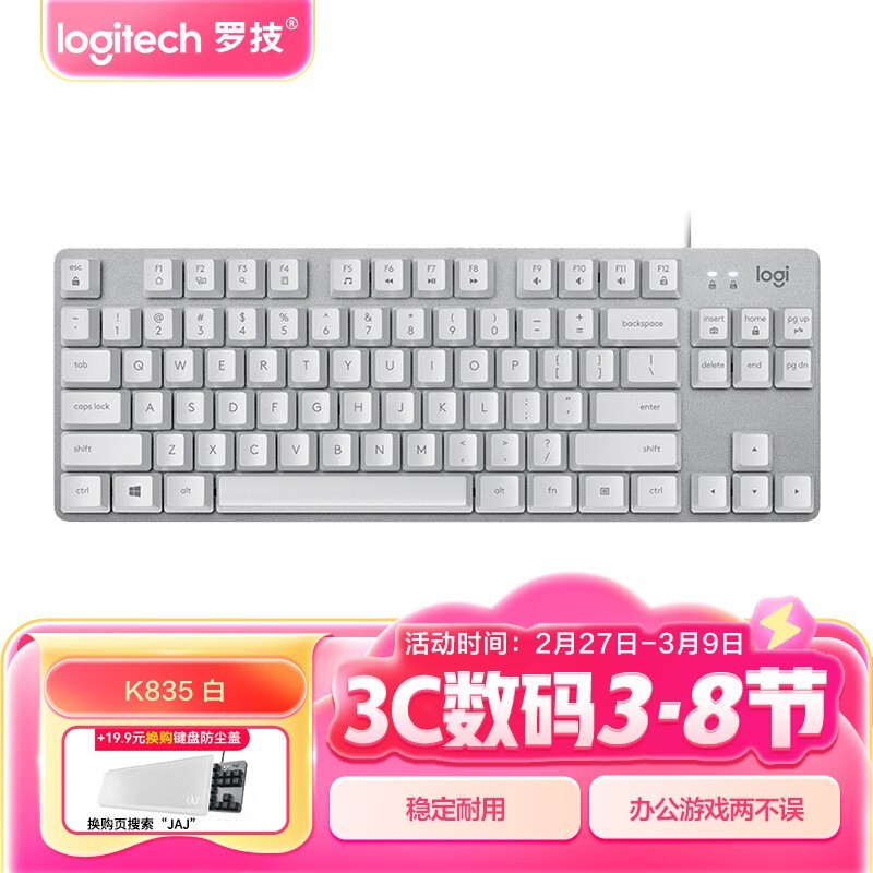 罗技K835机械键盘TTC红轴双色ABS键帽高效办公游戏键盘