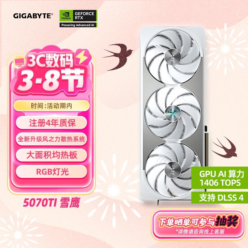 技嘉RTX 5070 Ti雪鹰显卡16G大容量畅爽游戏创作好价