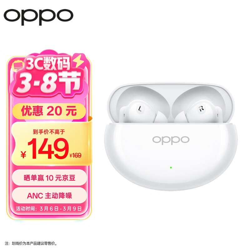 OPPO Enco Air4霜白款蓝牙耳机优惠价117元