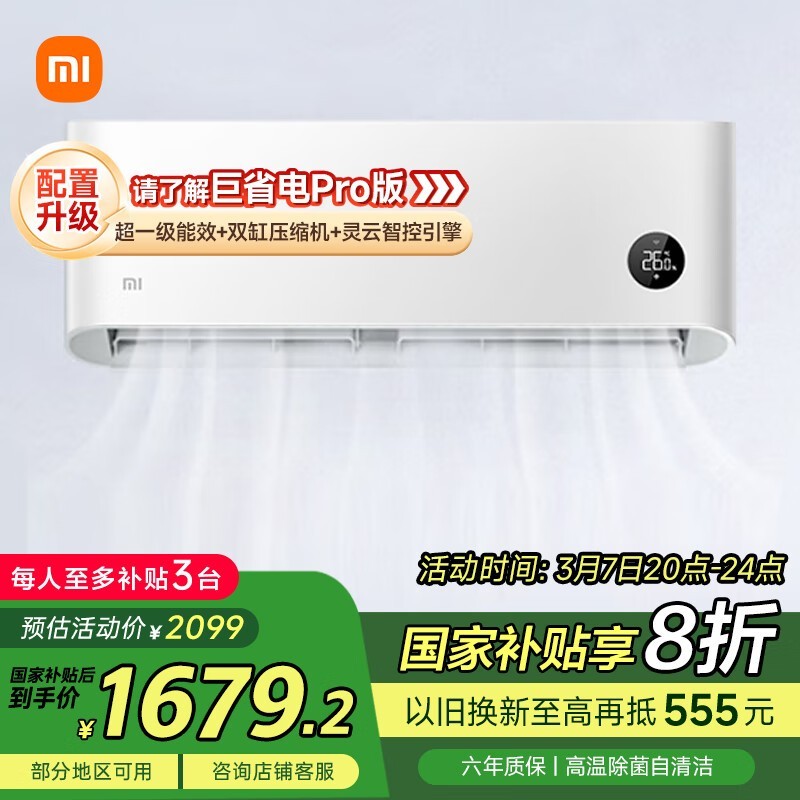 小米1匹空调超值优惠,到手价1668元