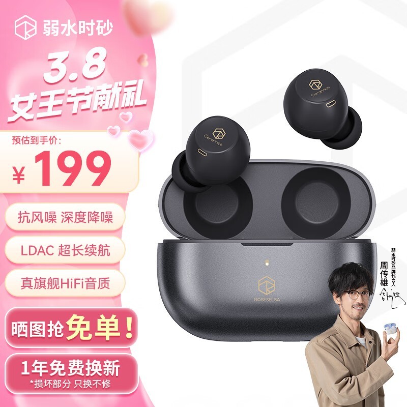 弱水时砂琉璃X真无线降噪蓝牙耳机暗夜灰版