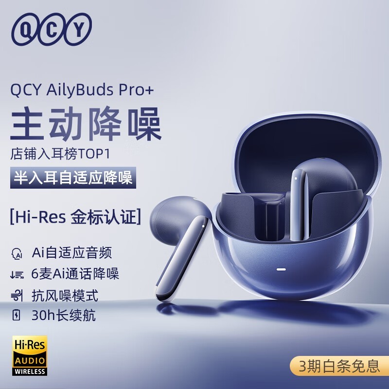 QCY AilyBuds Pro+金标版蓝牙耳机主动降噪半入耳式