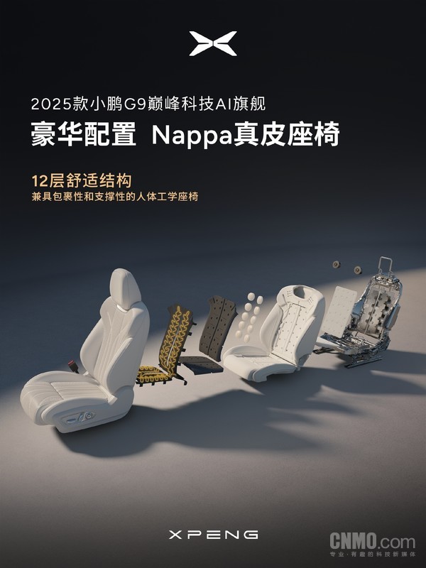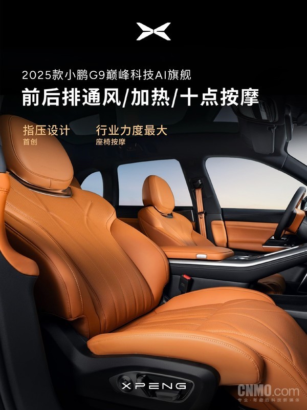 【CNMO科技消息】近日,小鹏汽车接连出招,官宣2025款G6和G9。继外观图片后,官方又在3月7日公布了新车的内饰图片。据CNMO了解,2025款小鹏G9定位“巅峰科技AI旗舰”,号称拥有“百万级豪华舒适体验”。
