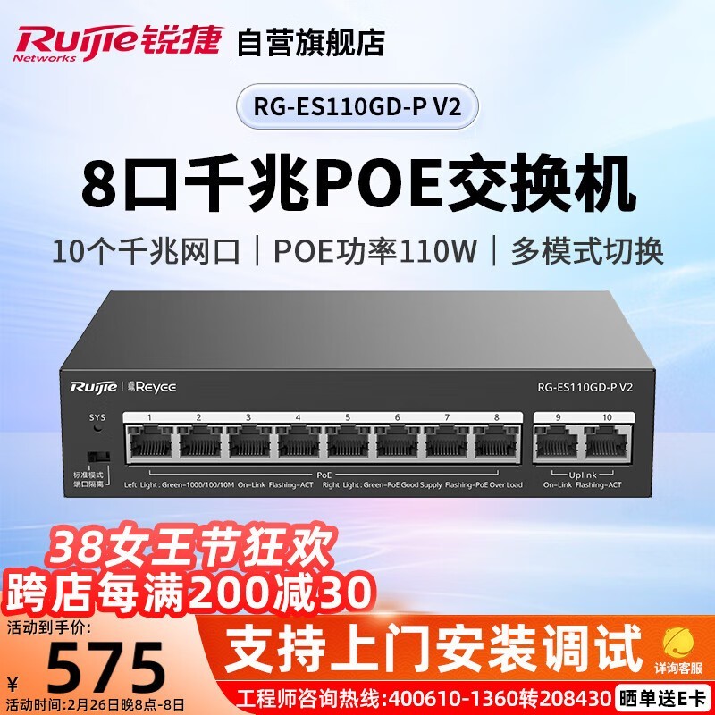 锐捷RG-ES110GD-P V2:10口千兆PoE交换机,高效稳定,经济实用的网络解决方案
