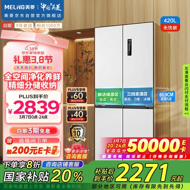 美菱BCD - 420WP9CZX冰箱,家庭适用到手2839元