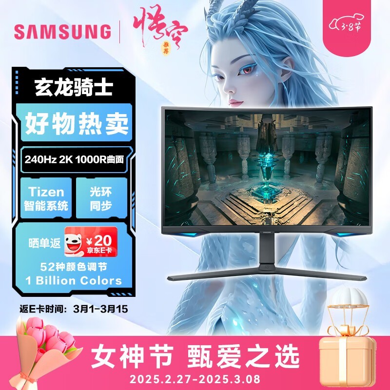 240Hz+2K HDR600电竞神屏:三星LS27BG654ECXXF,流畅游戏体验仅售2399元