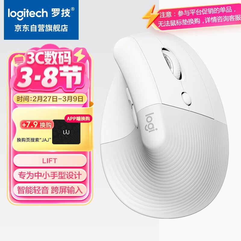 罗技Logitech Lift 2.4G蓝牙双模无线鼠标白色版舒适高效