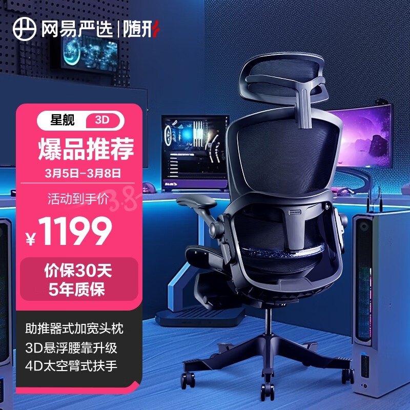 网易严选探险家D1星舰电脑椅黑色促销价1005元