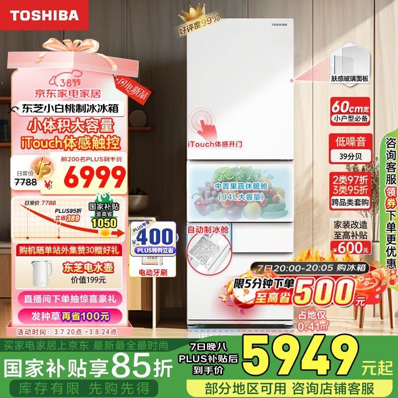 东芝409L风冷多门冰箱优惠价低至5322元