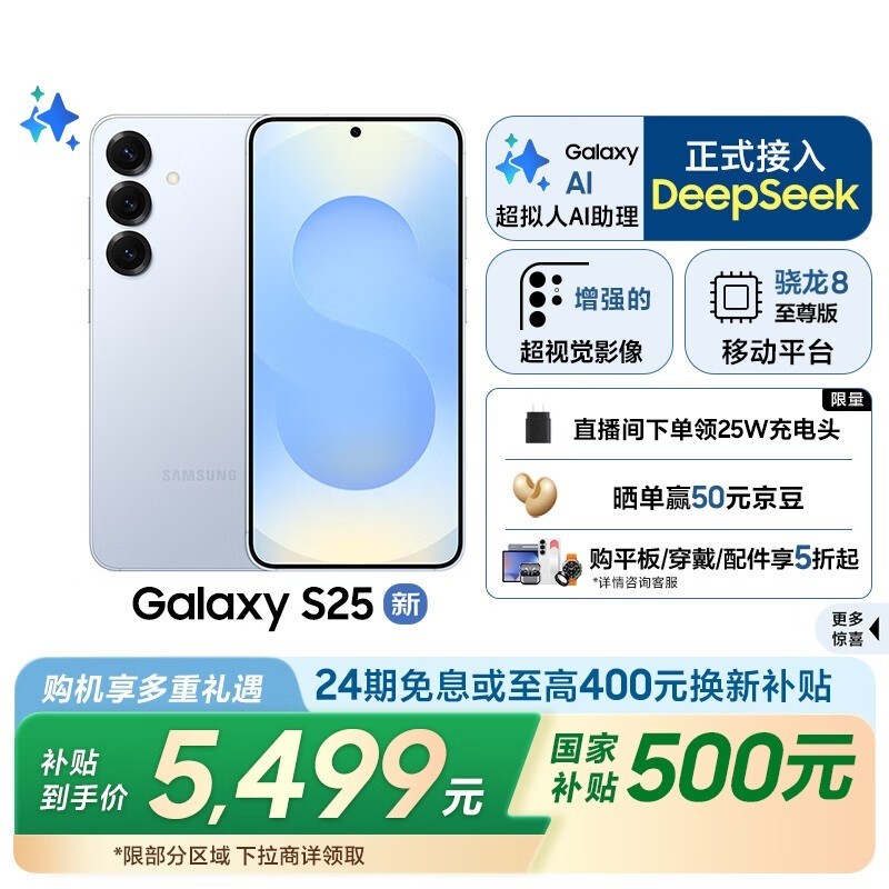 三星S25 5G手机冷川蓝12GB+256GB京东优惠仅5499元