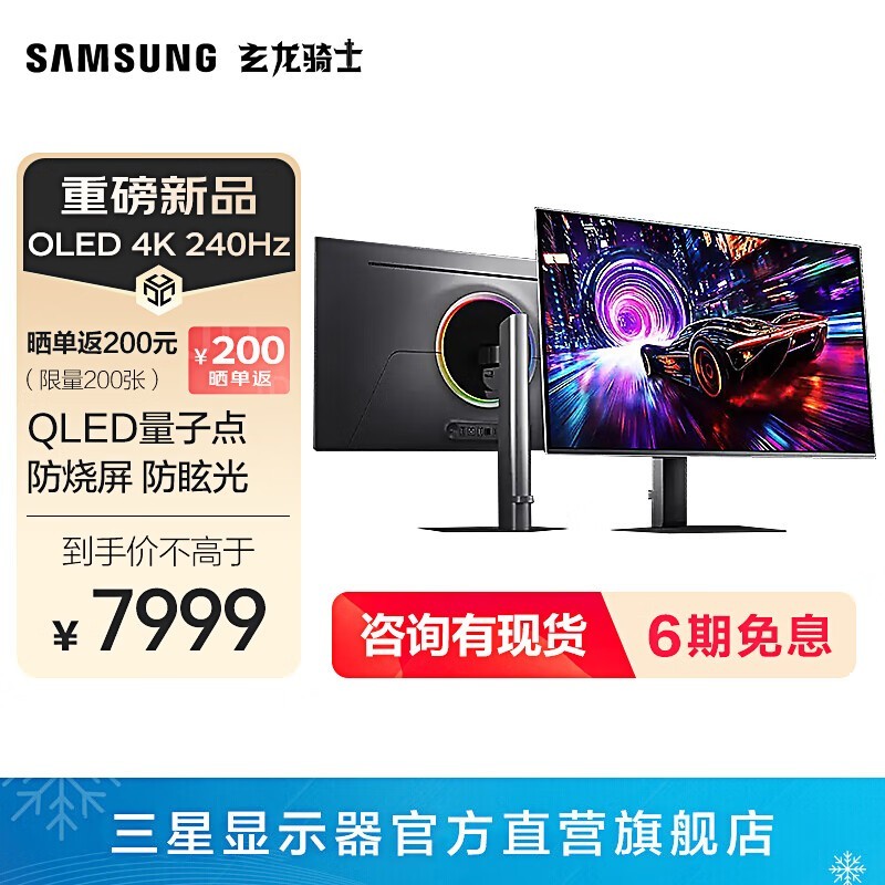 三星S27FG812SC:240Hz OLED 4K电竞显示器,7999元起,打造极致游戏与创作体验