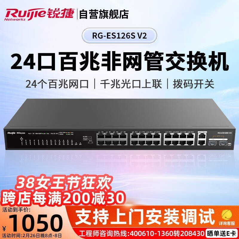 锐捷RG-ES126S V2:经济实用,24端口网络交换机,中小企业与监控的理想选择(仅售1230元)