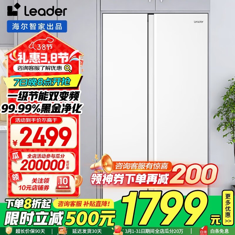 海尔539升双开门冰箱 京东1799元可入手